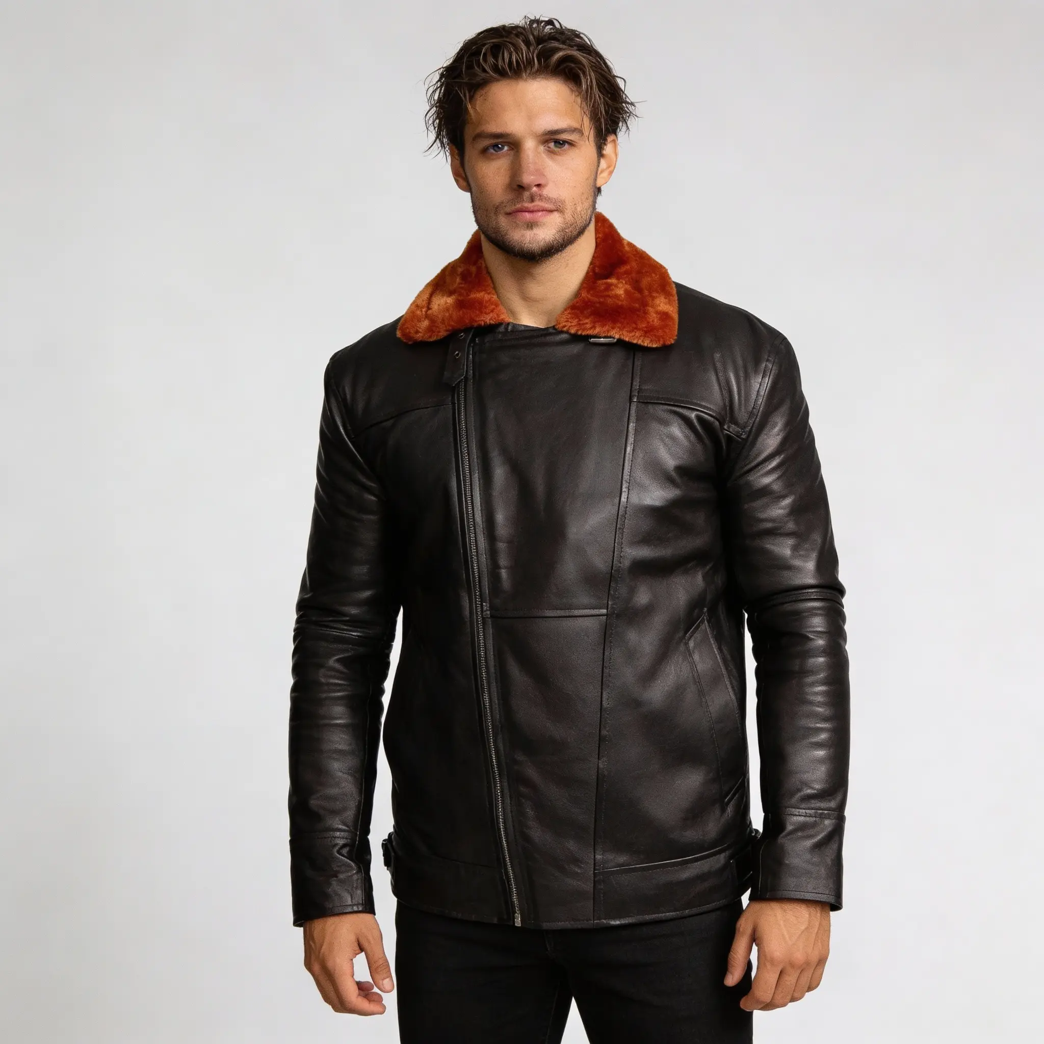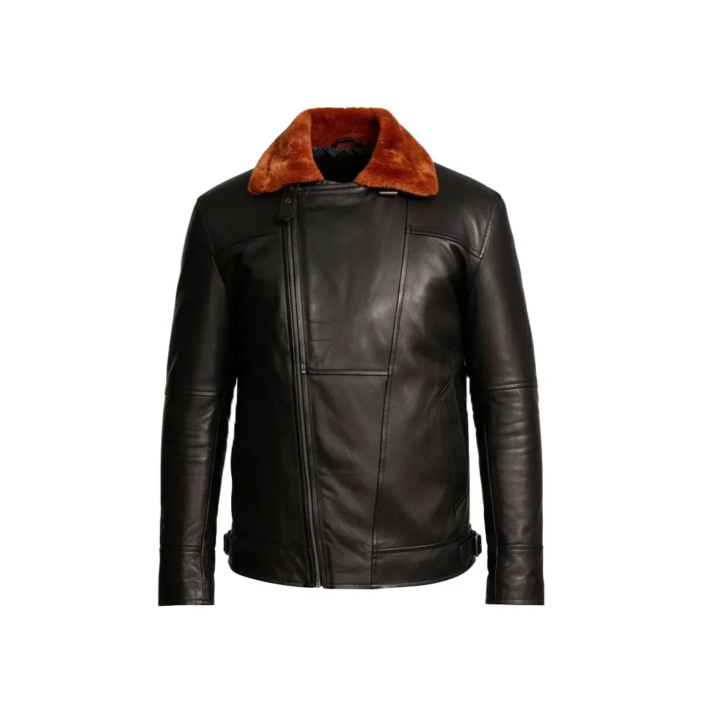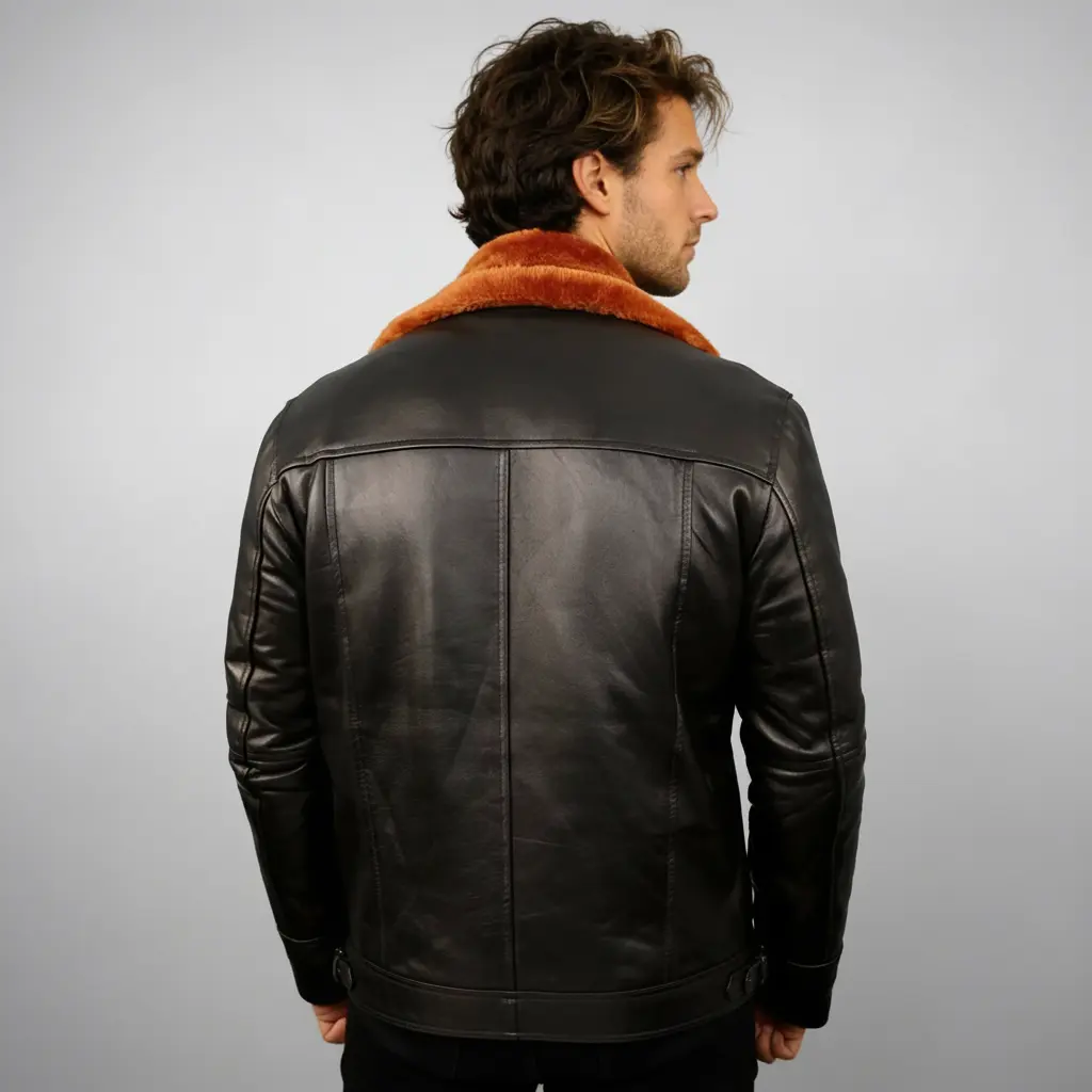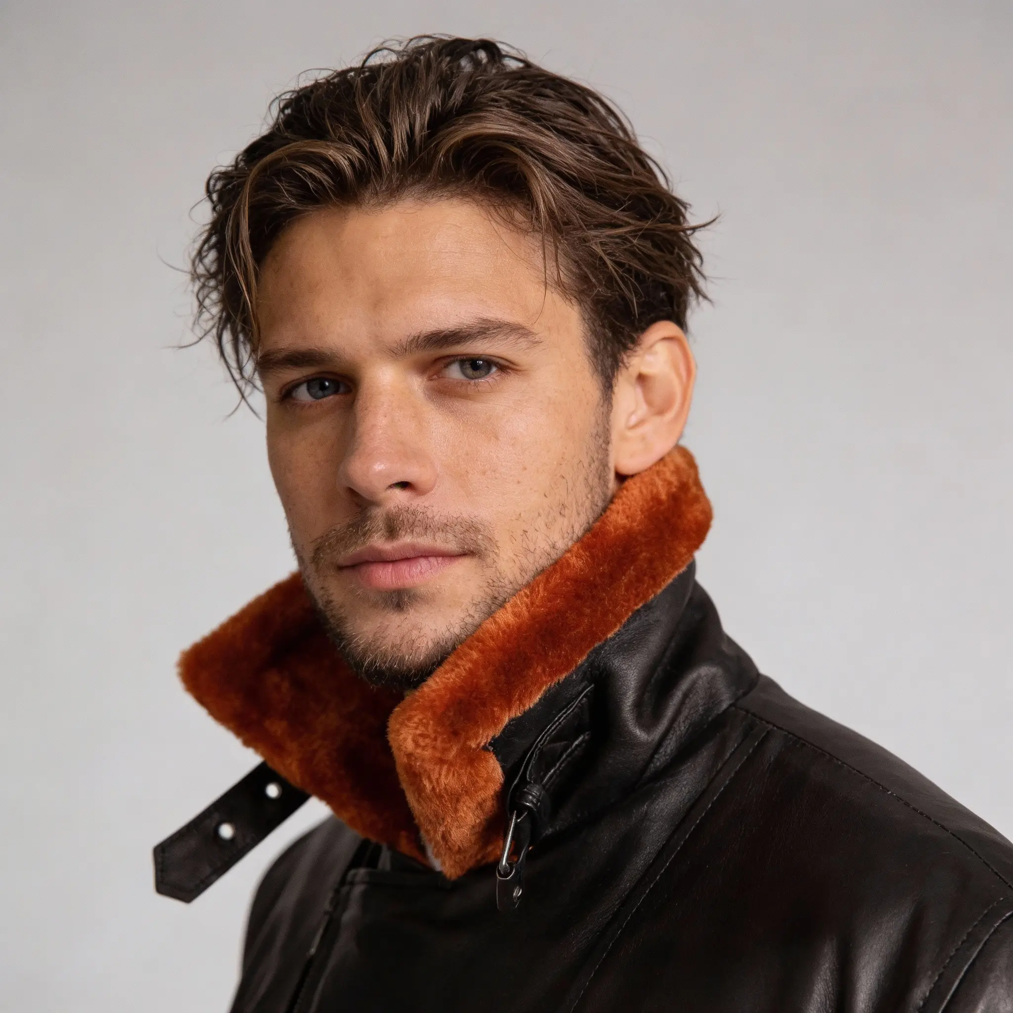 3 reviews for Men’s Black Aviator Bomber Fur Shearling Sheepskin Leather Jacket