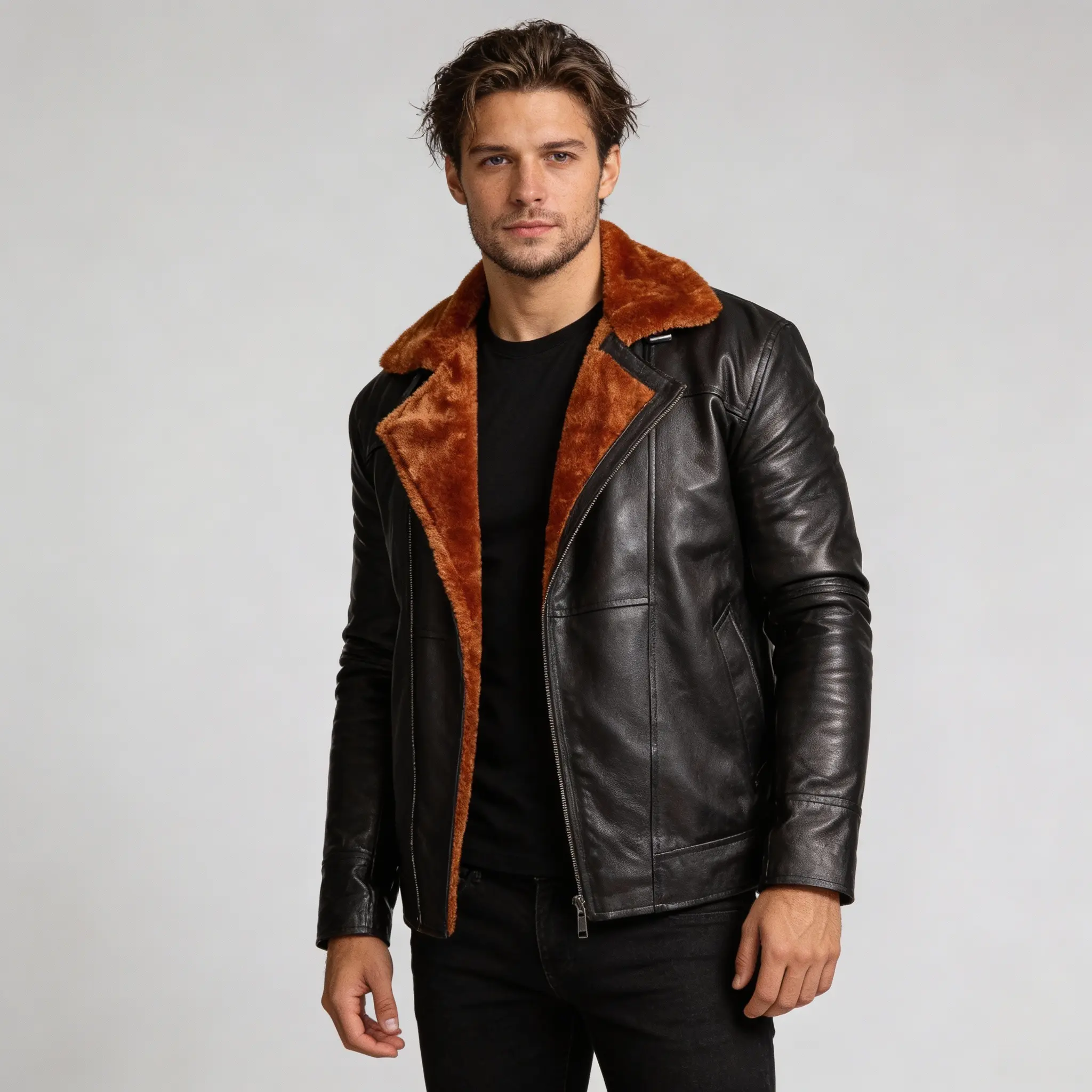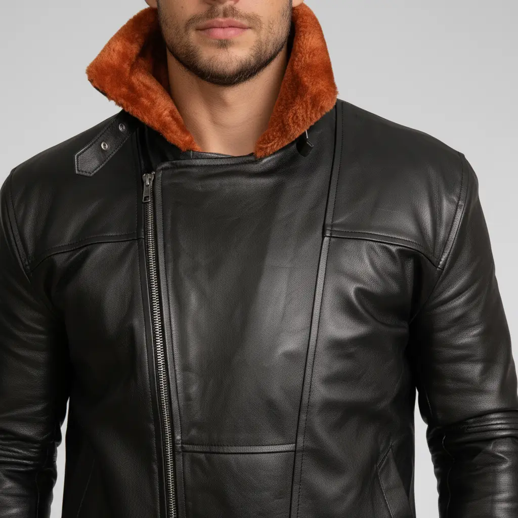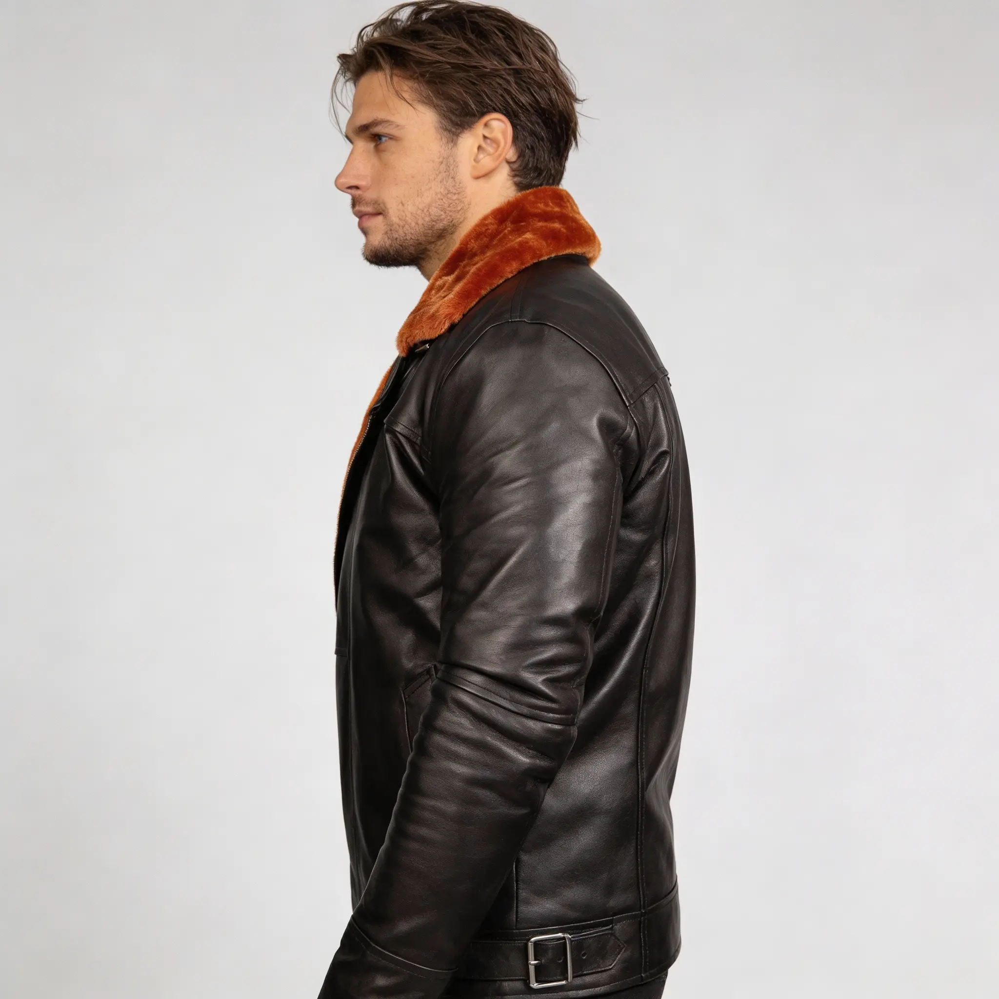3 reviews for Men’s Black Aviator Bomber Fur Shearling Sheepskin Leather Jacket