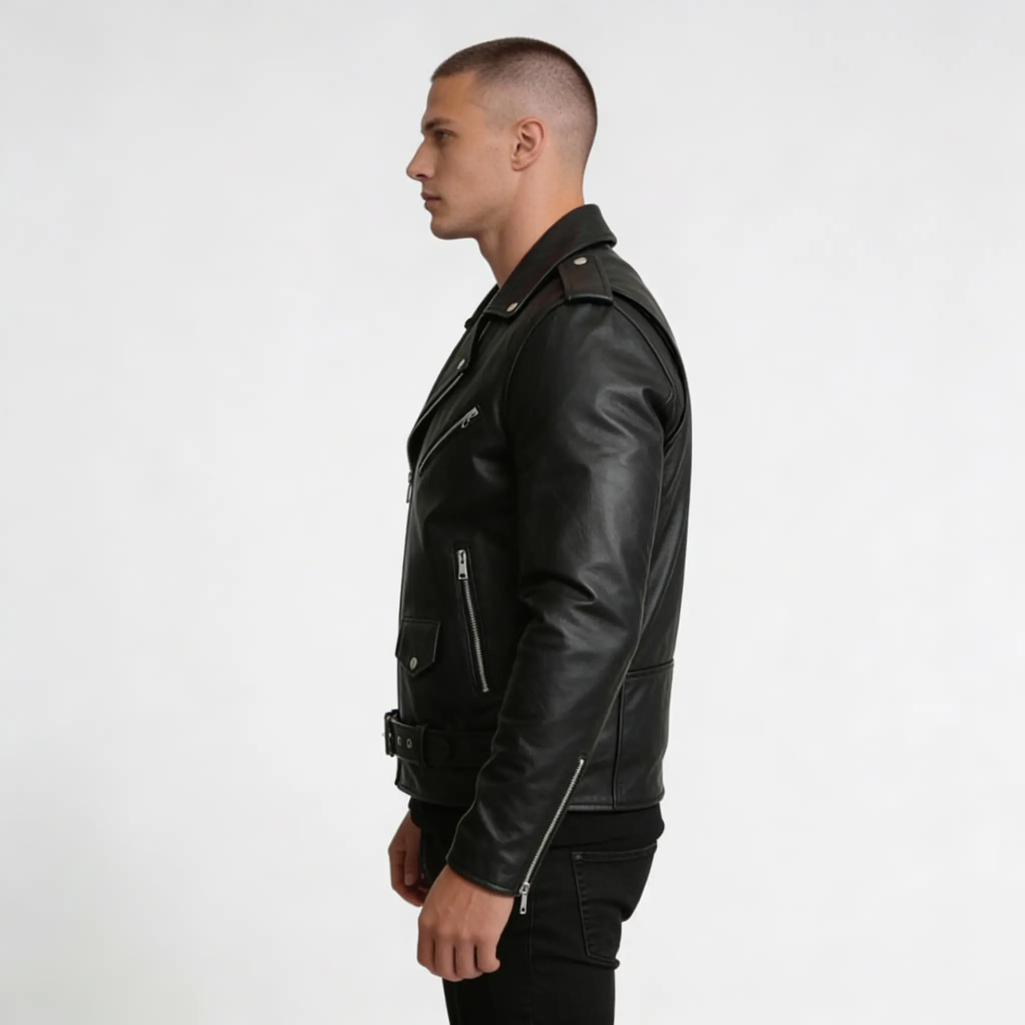 6 reviews for Men’s Black Belted Leather Motorcycle Jacket