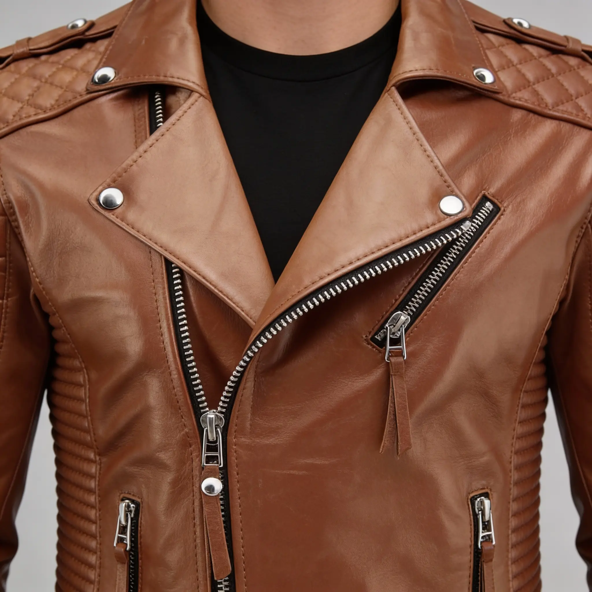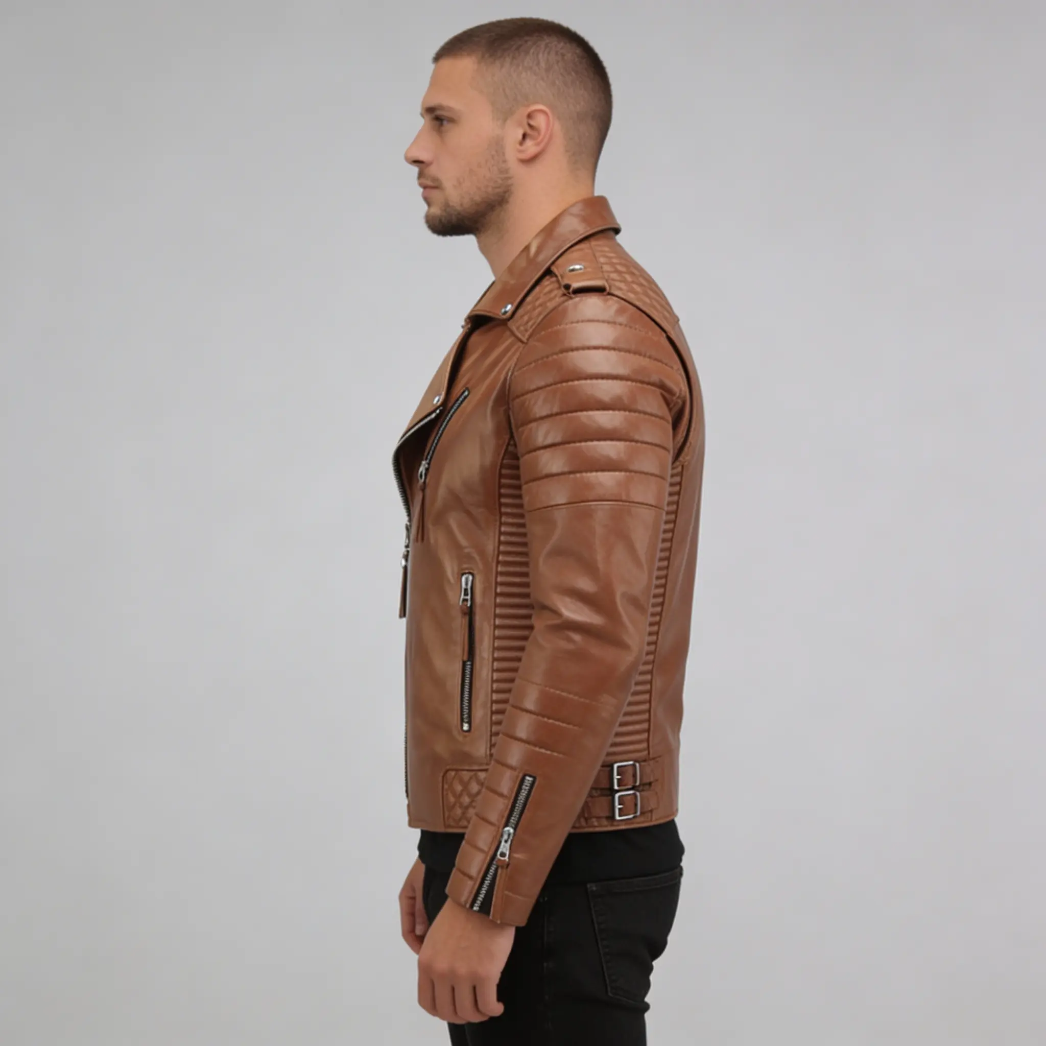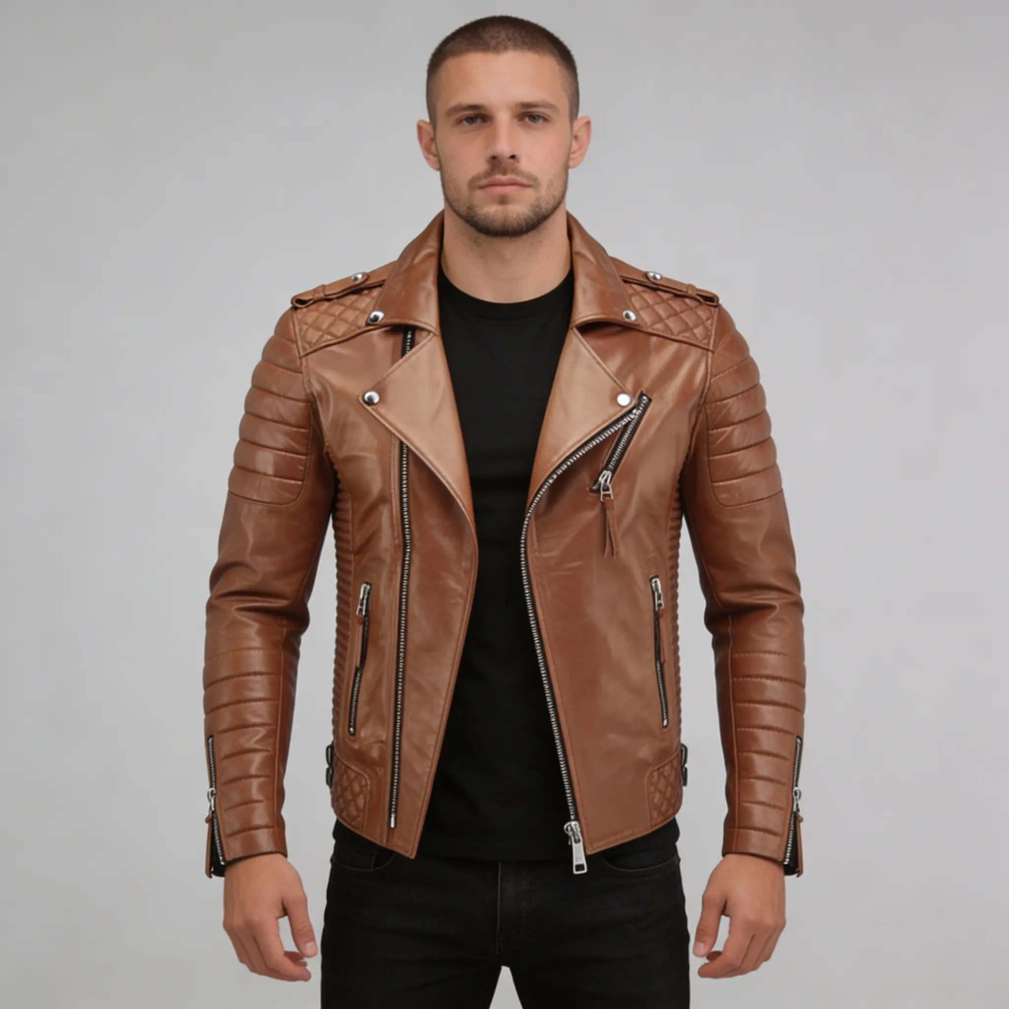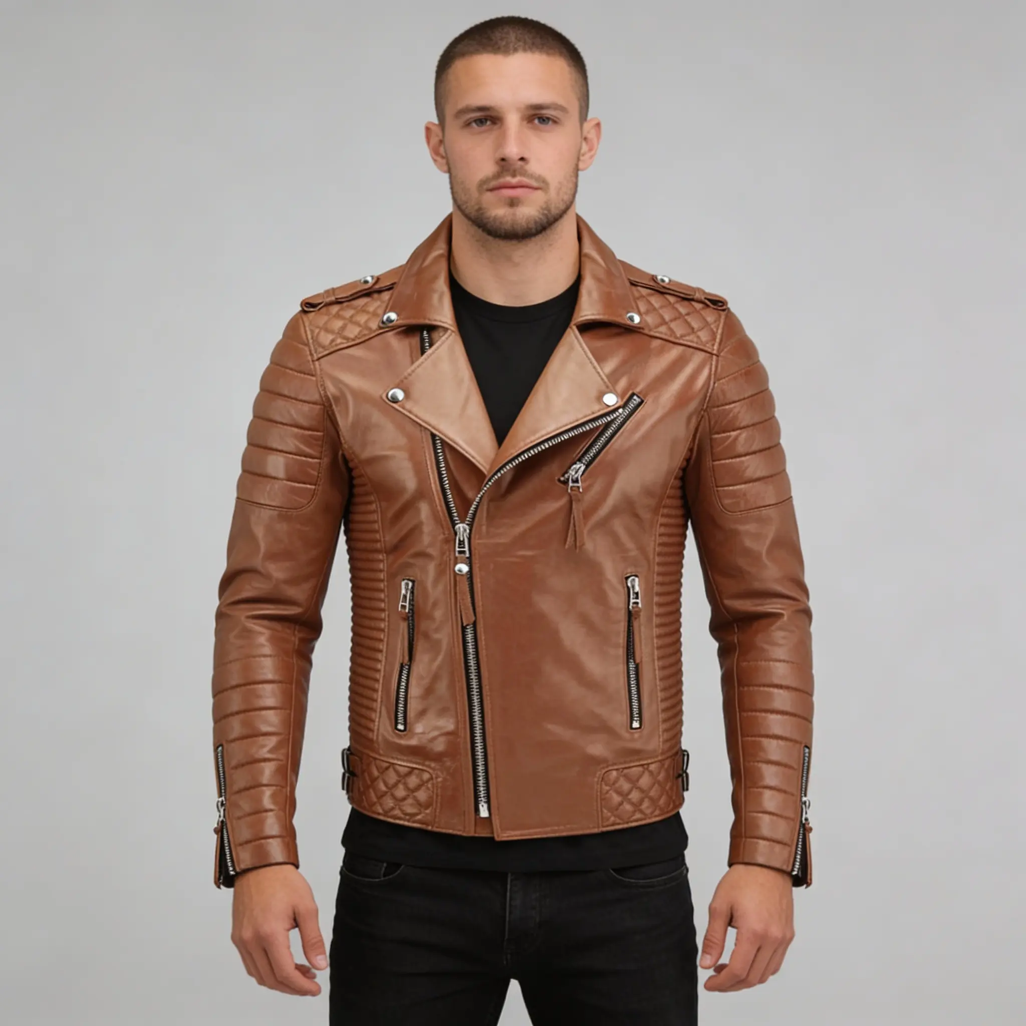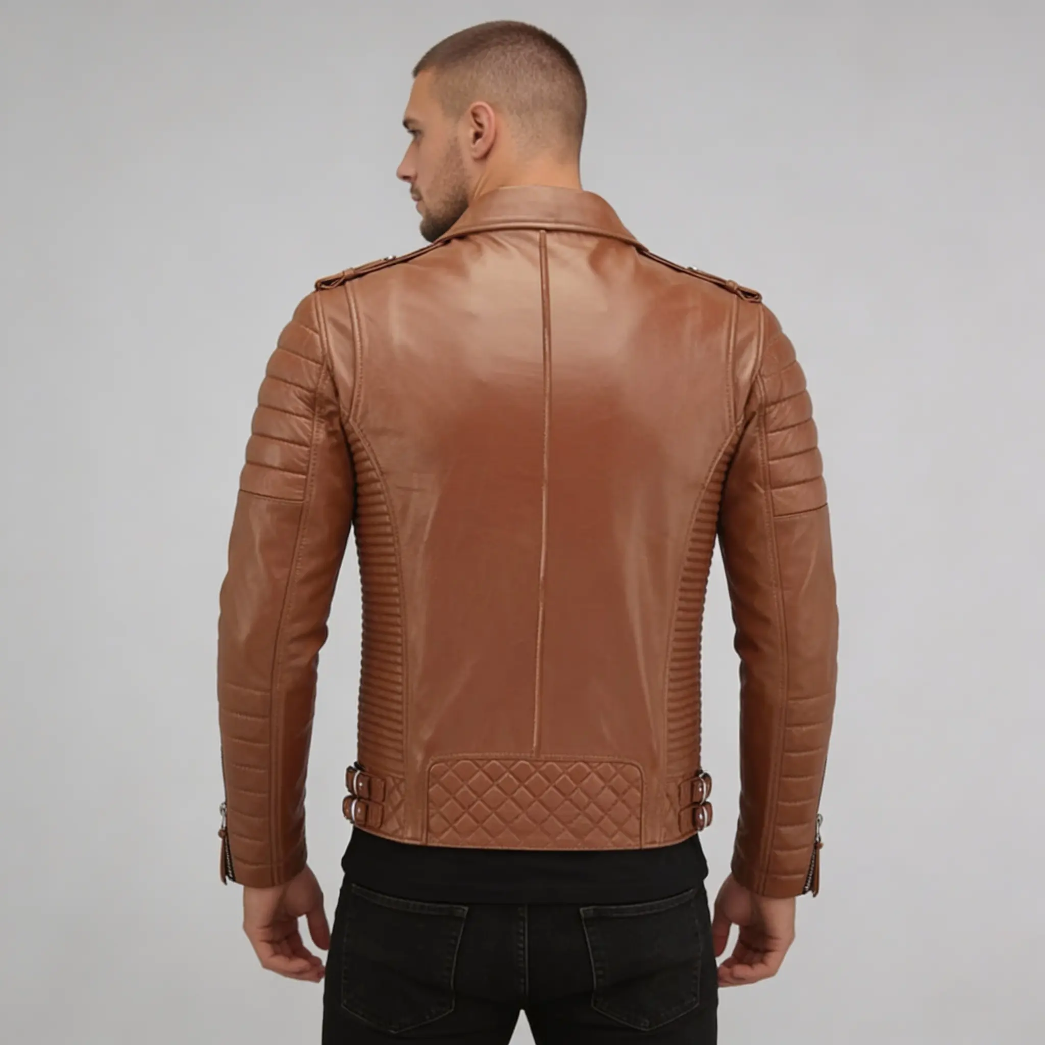 2 reviews for Men’s Tan Biker Leather Jacket