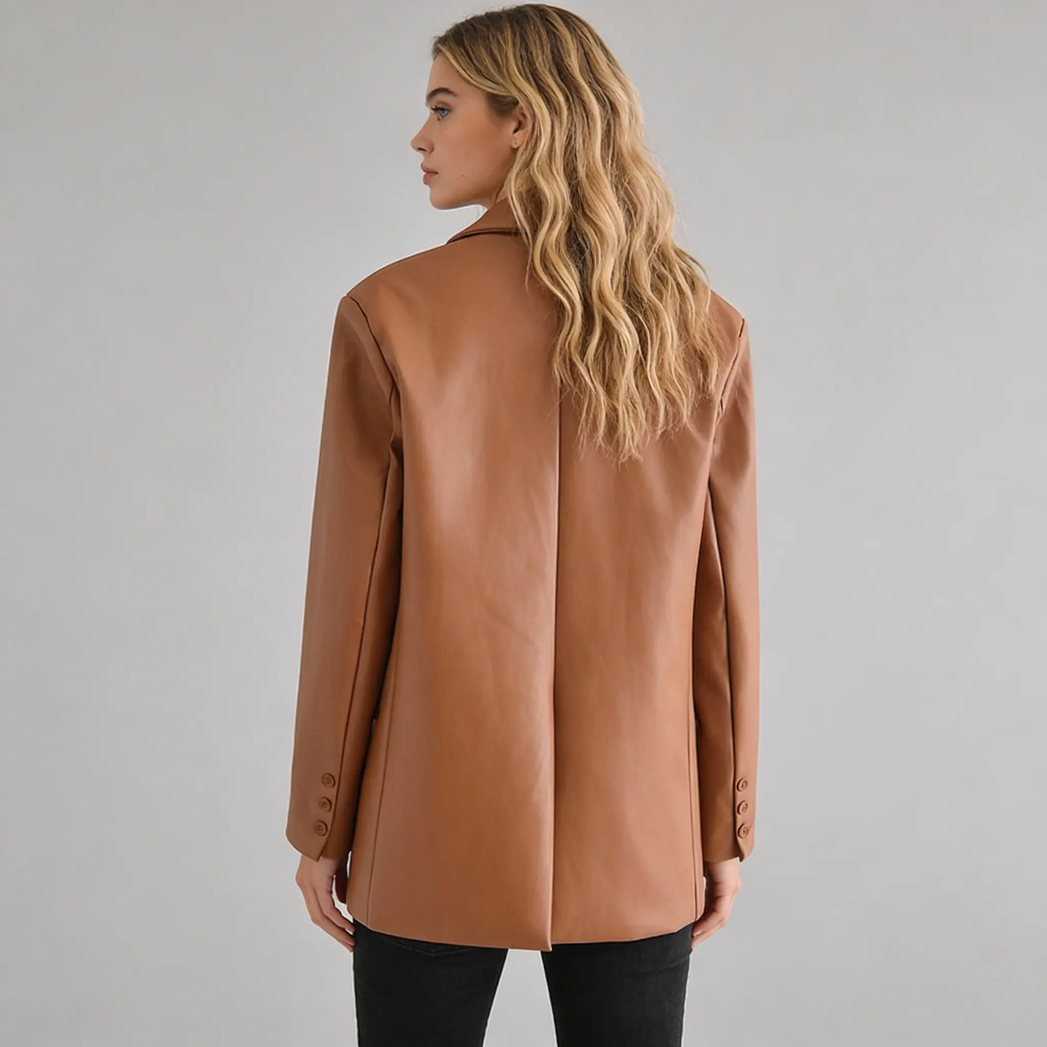 Enhance your style with the timeless Women’s Leather Blazer Jacket. A versatile piece that effortlessly adds sophistication to any outfit.